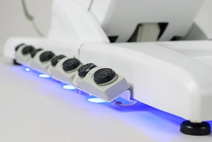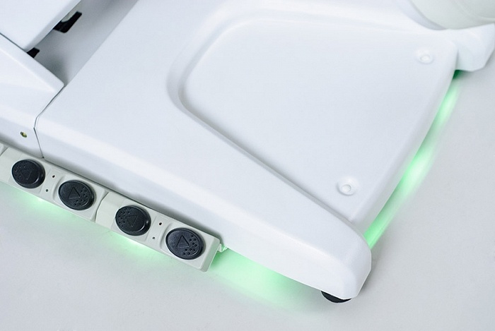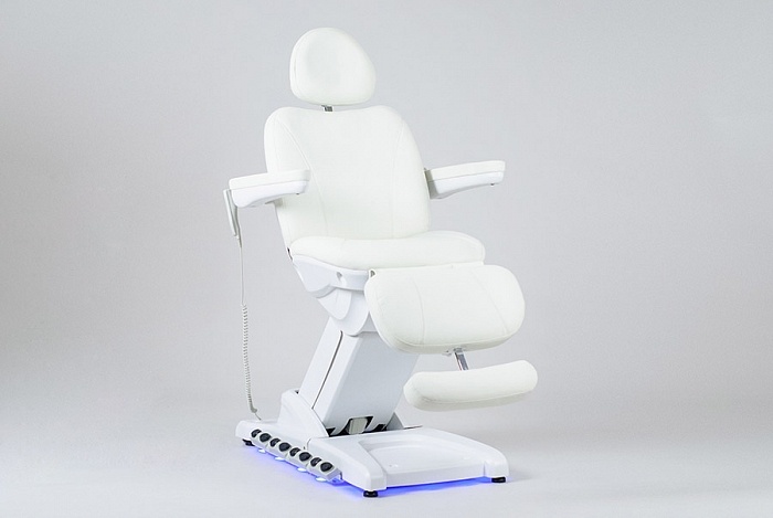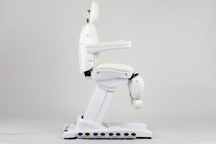 Косметологическое кресло SD-3872 оборудовано четырьмя электромоторами для регулировки высоты сиденья, наклона спинки, сиденья и ножной секции. Предусмотрено пять режимов регулировки кресла; подогрев спинки, сиденья и ножной секции; воздушная подушка в спинке кресла и пять вариантов подсветки платформы.