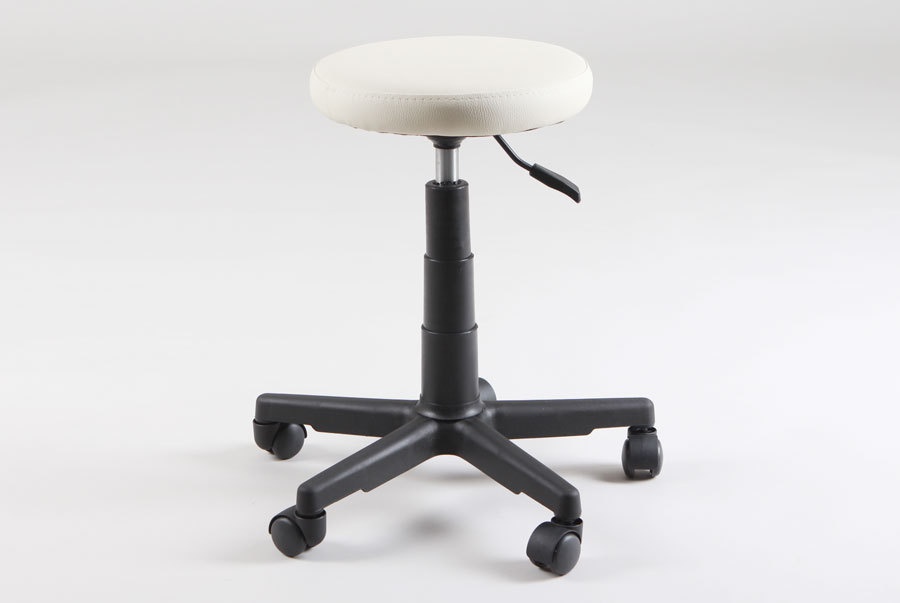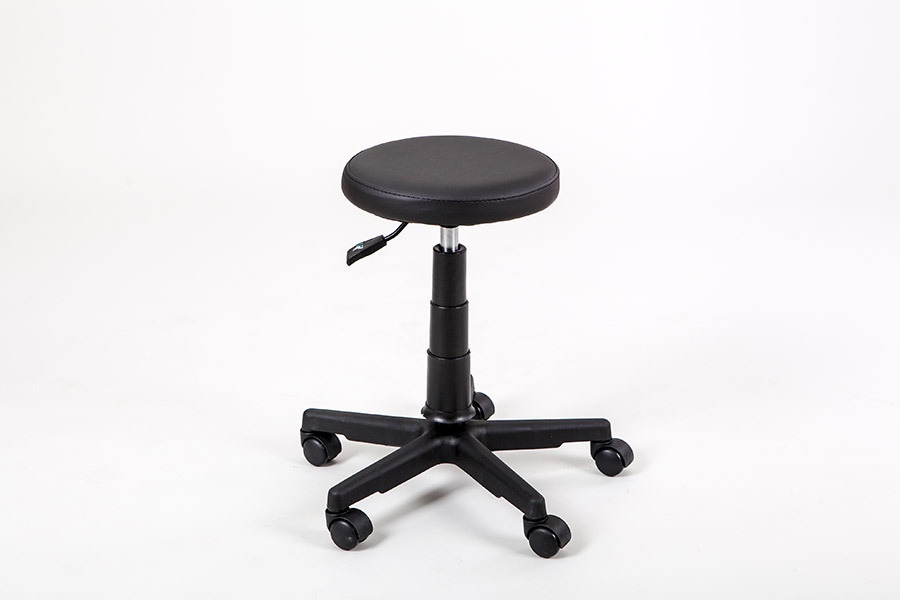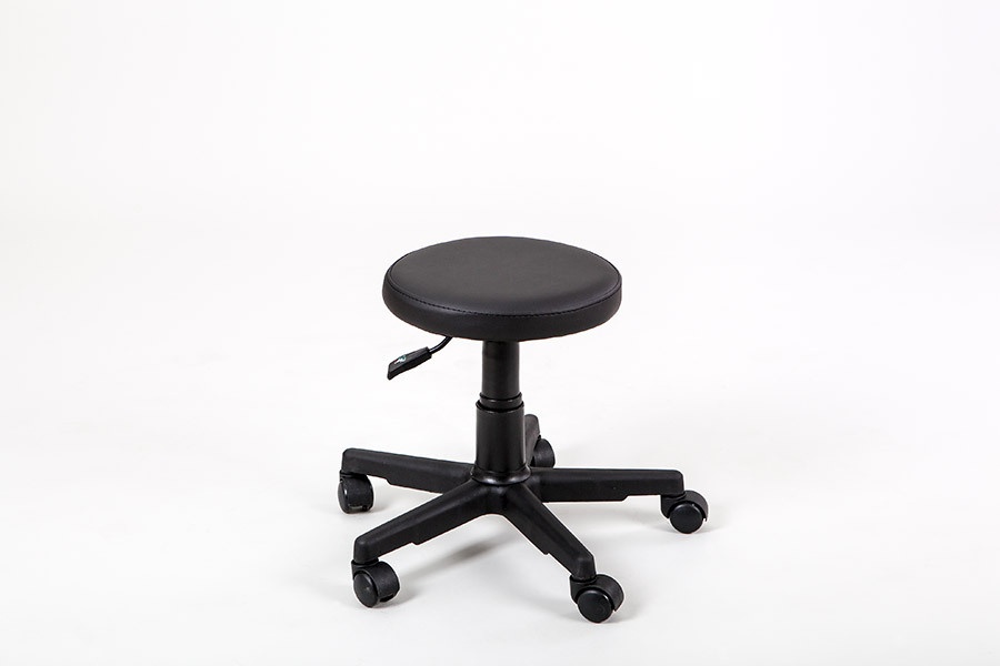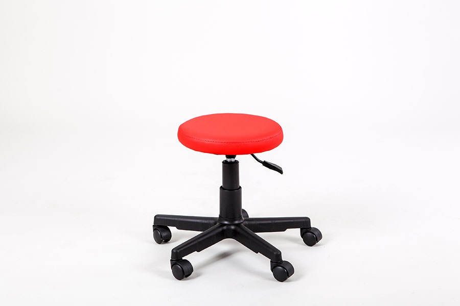 Стул мастера Rino круглой формы с пневматической регулировкой высоты на пластиковом пятилучье. Оснащен колесами. Увеличенное основание делает эту модель особенно устойчивой.
