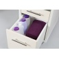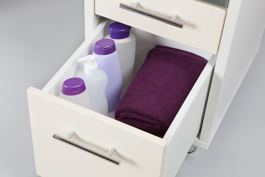 Стол для маникюра Суфикс – бестселлер среди маникюрных столов. Он обладает целым рядом преимуществ как внешних, так и функциональных. Встроенный стерилизатор: Встроенная УФ-камера для хранения и бактерицидной обработки инструмента – вам не нужно приобретать дополнительно стерилизатор. В маникюрном столе «Суфикс» применяются только профессиональные бактерицидные лампы фирм PHILIPS/OSRAM/SYLVANIA, рекомендованные к применению в медицинских целях. Ящики с доводчиками: Закрывание ящиков происходит плавно, с амортизацией, без толчков и посторонних звуков. Аналогичная конструкция ящиков применяется только в современной кухонной мебели. Прочная конструкция: Конструкция стола сочетает плиты Egger (Австрия) толщиной 25 мм и 16 мм, обеспечивающие жесткость конструкции. Столешницу поддерживают сразу 2 опоры. Кромка: Все детали маникюрного стола покрыты 2 мм кромкой Rehau, придающей эстетичный вид мебели и гарантирующей защиту от повреждений и намокания.
