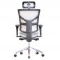 Кресло имеет широкий подголовник с режимом погона угла наклона и высоты положения, регулируемые 4D подлокотники, эргономичная спинка с постоянной поддержкой поясницы. Обивка сидения и спинки выполнена из материала сетчатого типа, что гарантирует долговечность высокую прочность и износостойкость.