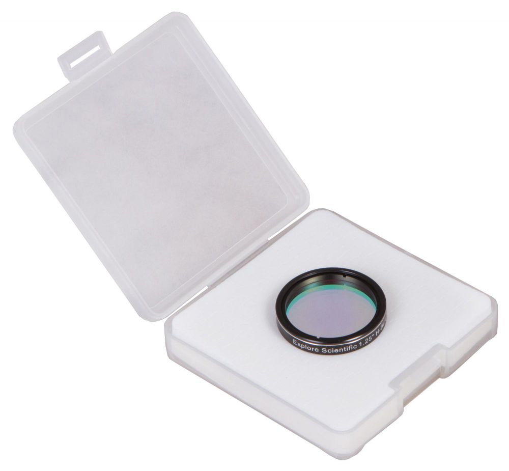 Светофильтр Explore Scientific H-Beta блокирует любое излучение, пропуская лишь узкую область вблизи того значения, в котором излучают эмиссионные туманности. Благодаря этому значительно повышаются контраст, четкость и детализация наблюдаемых астрономических объектов. Те туманности, которые не мог уловить даже 300-миллиметровый телескоп, вдруг становятся хорошо различимы даже в черте города.
