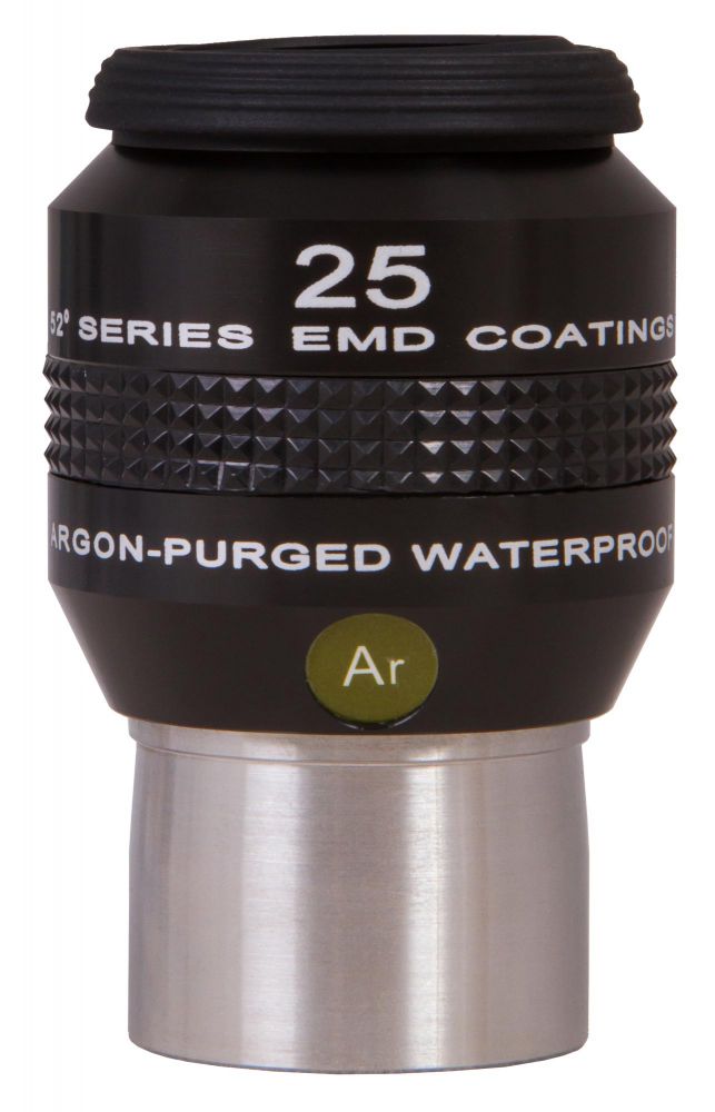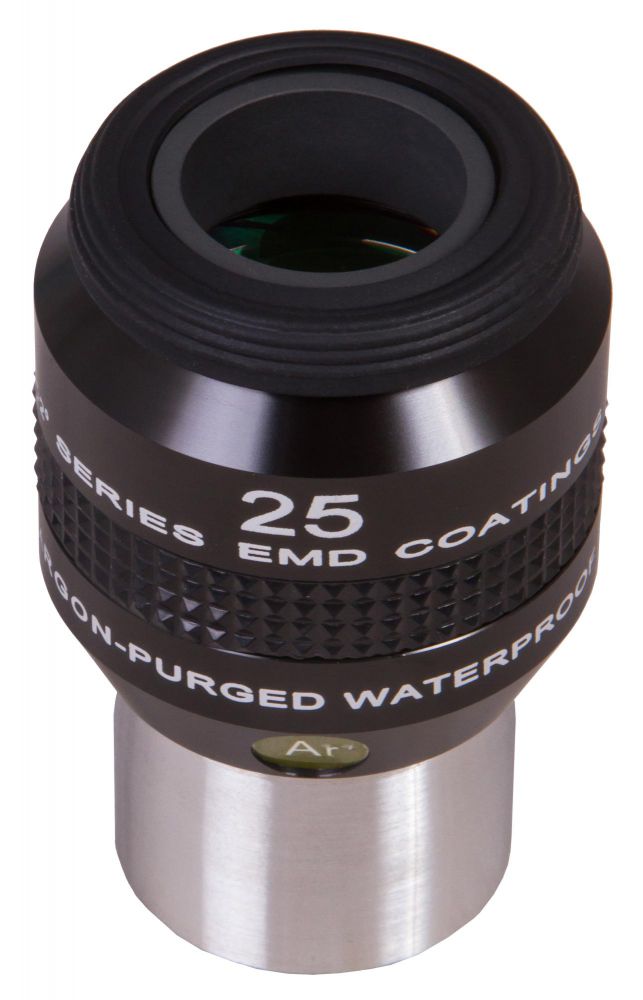 Все линзы окуляра сделаны из оптического стекла. На поверхности, контактирующие с воздухом, нанесено несколько слоев просветляющего покрытия EMD – это собственная запатентованная разработка Explore Scientific. Края линз зачернены, что избавляет от возникновения паразитной засветки и уменьшает появление случайных бликов. Корпус окуляра прочный, надежный и герметичный. Он не боится влаги, внутрь окуляра не может попасть даже капля воды, а продувка аргоном защищает оптику от выпадения конденсата.