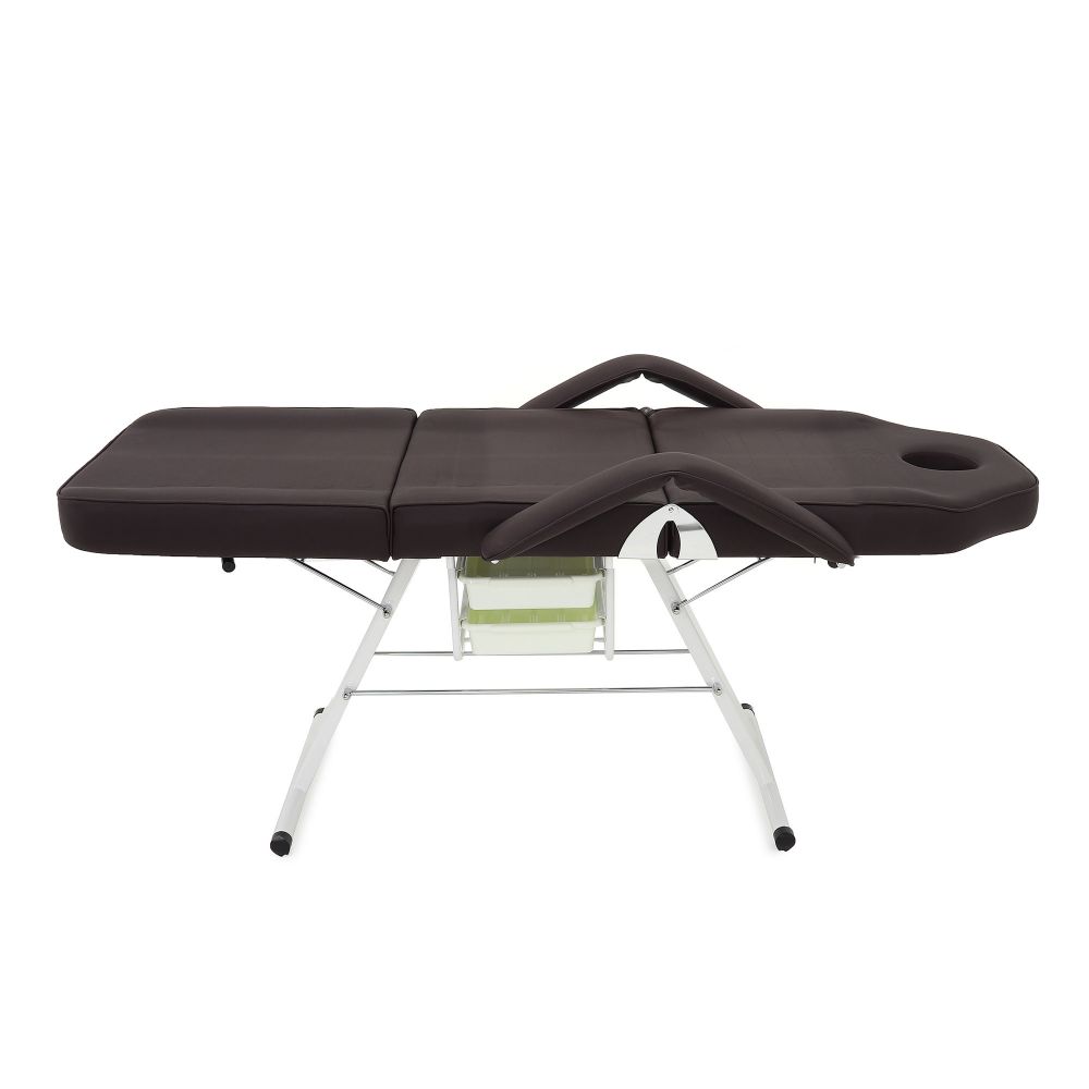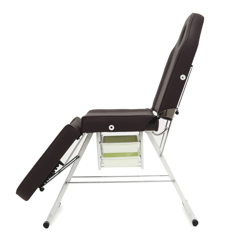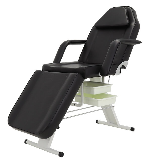 Для дополнительного удобства под сиденьем есть ниша для двух контейнеров, в которых можно хранить косметологические препараты, дезинфицирующие средства или вспомогательные приспособления. В качестве наполнителя используется поролон, а внешняя обивка выполнена из устойчивого к истиранию люкс-винила. Косметологическое кресло FIX-1B имеет широкое применение. Его можно использовать в медицинских учреждениях, в салонах красоты, а также в тату-салонах. Это изделие обладает высоким уровнем комфорта благодаря плотному слою поролона и поверхности из люкс-винила. Небольшие габариты позволяют стол-кресло легко транспортировать в любое удобное место. Устройство обладает механическим фиксатором, с помощью которого можно менять угол ножной секций.