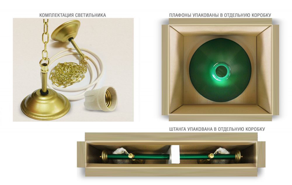 Применение керамических патронов (Е27) увеличивает срок эксплуатации светильника. Штанга и плафоны поставляются в отдельных упаковках.