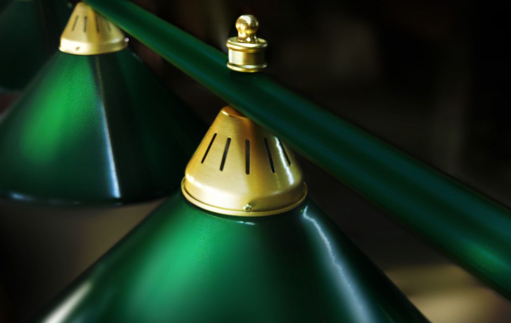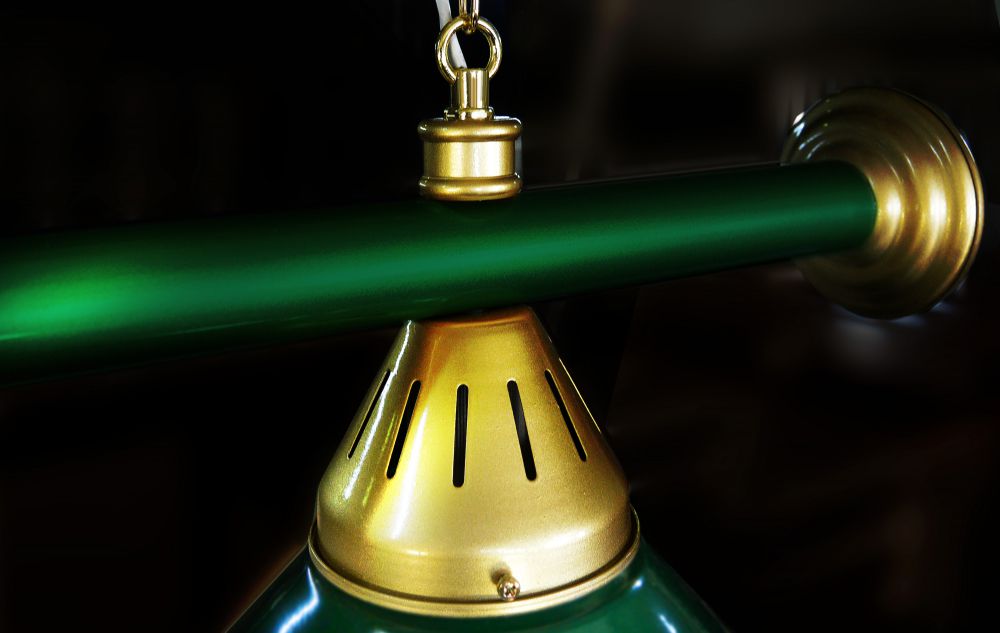 Металлические плафоны крепятся с помощью зажимных пластин. Длина подвесной цепи 100 см — оптимальное расстояние для расположения источника света над игровым полем стола. В комплект включены две потолочные чашки диаметром 10 см.