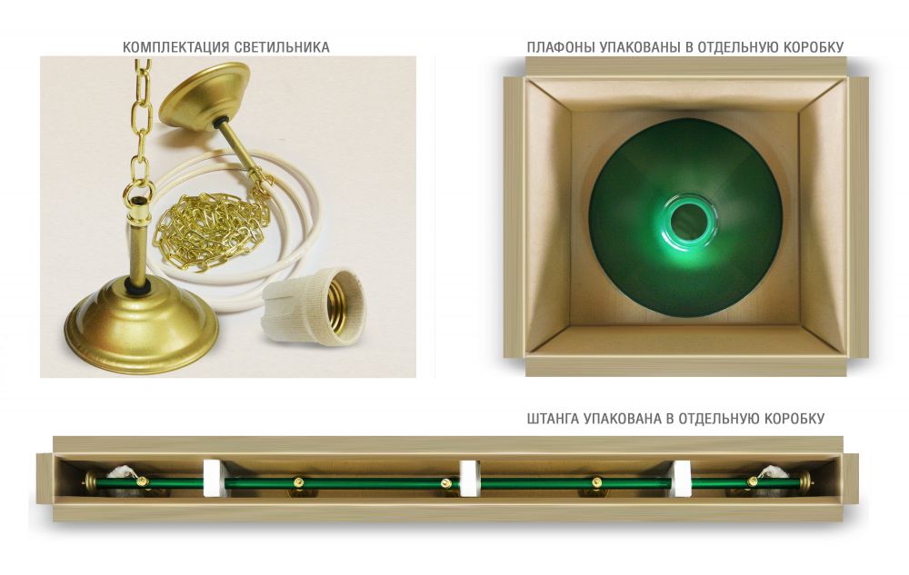 Применение керамических патронов (Е27) увеличивает срок эксплуатации светильника. Штанга и плафоны поставляются в отдельных упаковках.