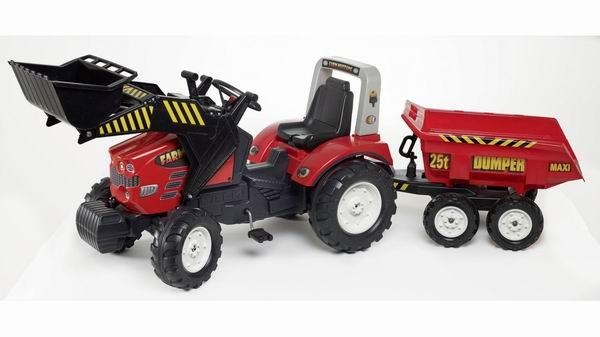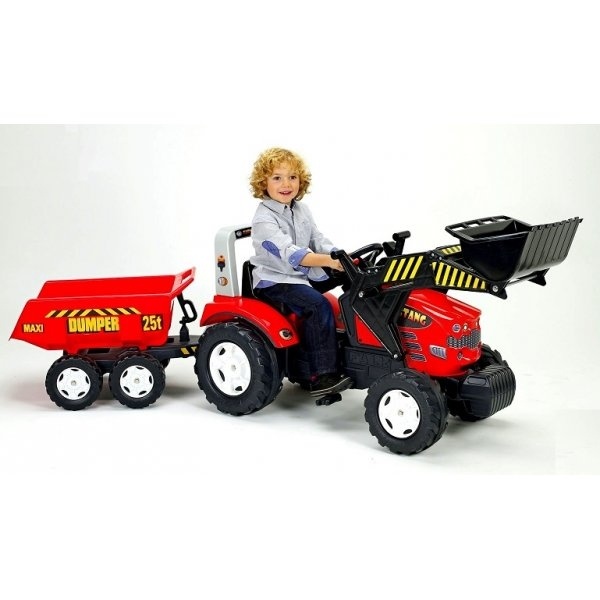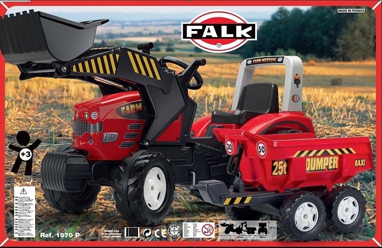 Трактор-экскаватор педальный Falk FAL1070P с прицепом красный