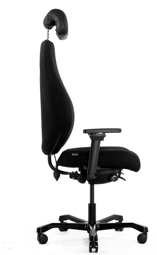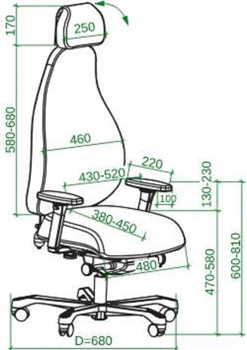 Подголовник с механизмом индивидуальной конфигурации «Head comfort», 15 точек фиксации по высоте, в диапазоне 100 мм. Гибкая настраиваемая конструкция на металлическом кронштейне с большим диапазоном по высоте и выдвижению вперёд. Подлокотники 4D. Есть возможность движения кронштейна подлокотника от сидения по ширине. Изменение по высоте регулируется кнопкой. Верхняя площадка эргономичной формы, изготовлена из прорезиненного пластика вращается по кругу на 360 градусов.