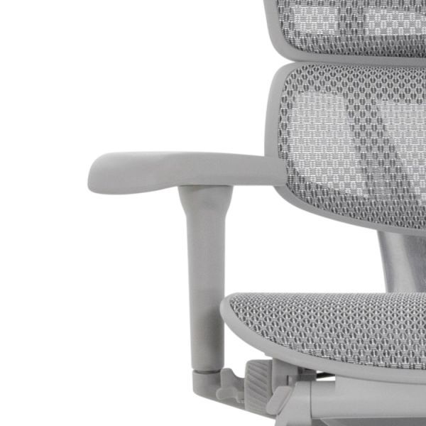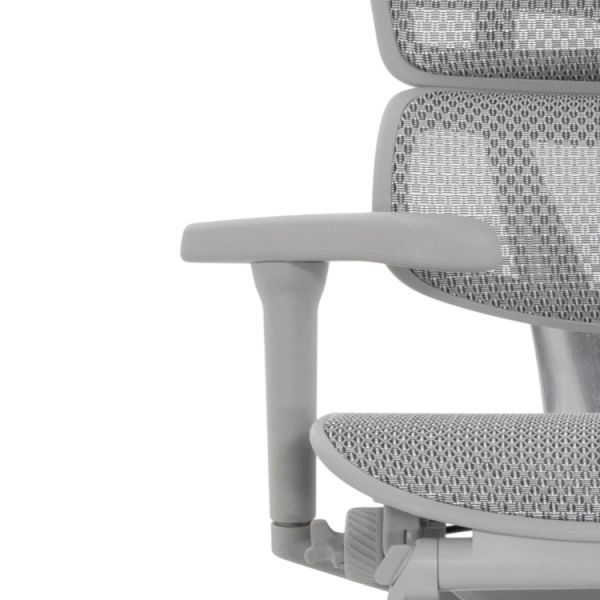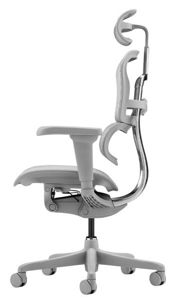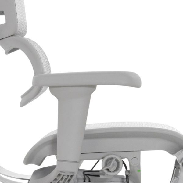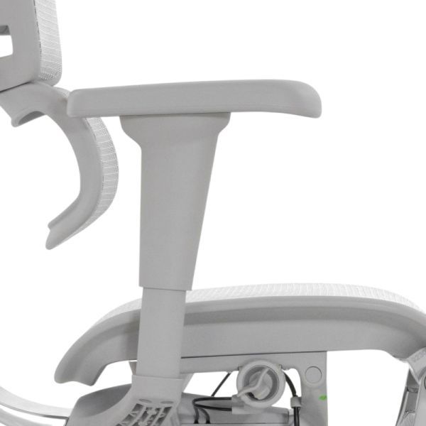 Кресло оснащено спинкой с гибкой поясничной опорой 6D, которая регулируется по натяжению и высоте, поддерживая правильное положение позвоночника. 2D подголовник легко настраивается по высоте и углу наклона, чтобы снять напряжение с шеи и верхней части спины.