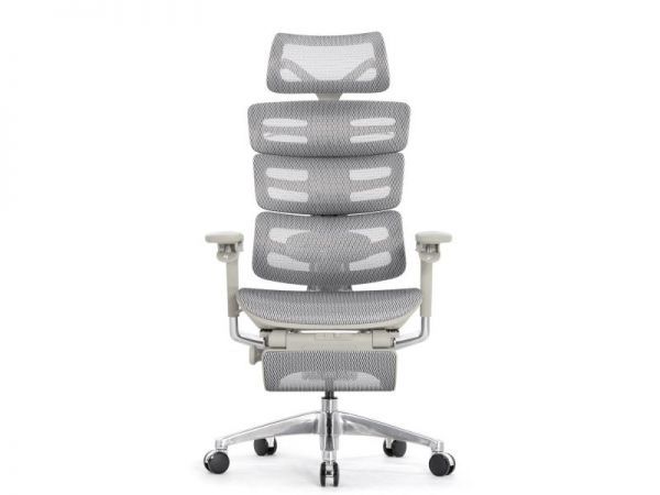 Кресло эргономичное Falto Evolution с подножкой (серый каркас, белая сетка)