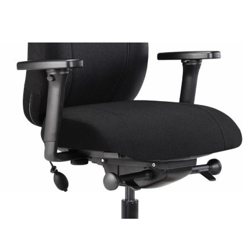 Удобная настройка по высоте без кнопок и рычагов, в диапазоне 100 мм, 5 точек фиксации. Адаптивное наполнение с системой «Aire Shape System». Встроенный пневматический поясничный валик с эластичной боковой поддержкой. Пневматическая система позволяет накачать необходимый размер поясничной поддержки. Для того что бы почувствовать полное прижатие поясничного валика к спине, нужно при помощи компактной ручной помпы надуть воздушную камеру, встроенную в нижнюю часть спинки диспетчерского кресла на уровне поясницы.