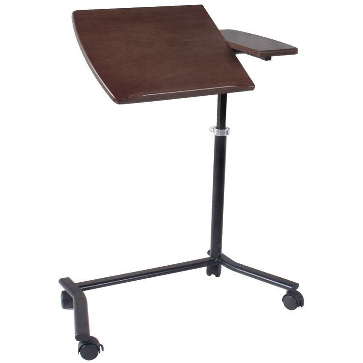 Компьютерный столик оснащен специальным бортиком для предотвращения соскальзывания и падения ноутбука. Столешница разделена на полочку для мыши и основную часть - для ноутбука. Угол наклона основной части столешницы регулируется.