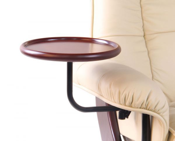 Прочный столик-подставка крепится к подлокотнику кресел Релакс. На него можно поставить чашку, положить книги или журналы, или пульт дистанционного управления, чтобы сделать Ваш отдых еще более комфортным. Положение столика регулируется.