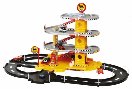 Отличный игровой комплект для юных любителей авто. Набор состоит из четырехуровневого паркинга и трека вокруг него, по которому можно катать машинки. На первом этаже комплекса находятся автомастерская, заправочная станция и автомойка, а на остальных — парковка. Лифт позволяет подняться на верхние уровни. Фонари, расположенные вдоль дороги, светятся в темноте.