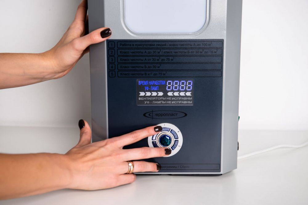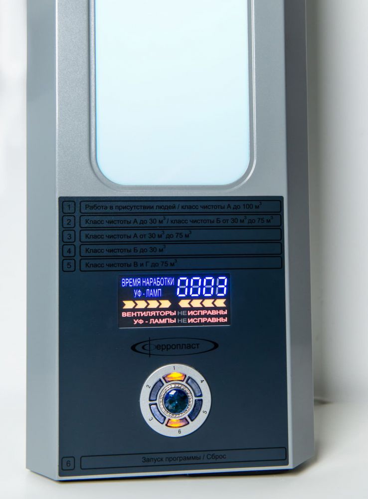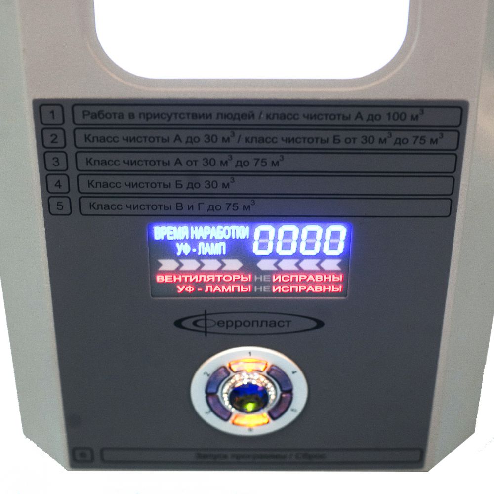 Рециркулятор имеет дисплей с цифровым отображением времени наработки ламп с точностью до 1 часа.