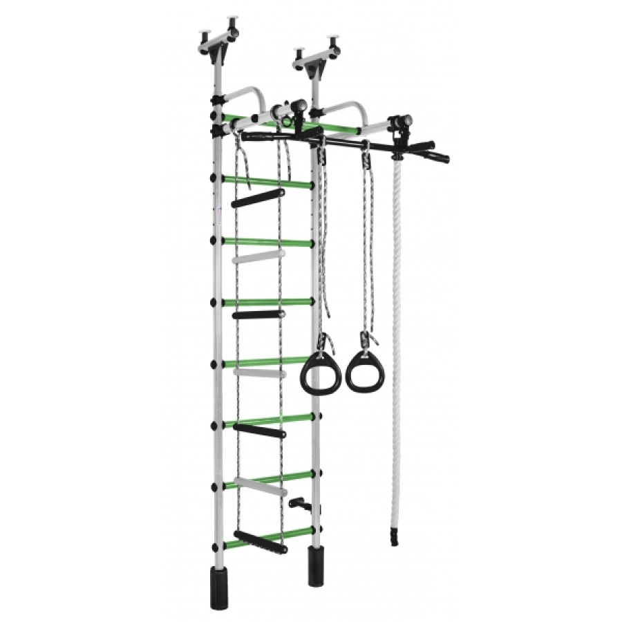 Покупая шведскую стенку Формула здоровья Жирафик, вы делаете неоценимый вклад в укрепление здоровья и гармоничное развитие своего ребенка! Данная модель отличается компактными габаритами, поэтому прекрасно подходит для установки в небольших детских комнатах. Максимальная нагрузка на изделие может достигать 150 кг, что позволяет использовать этот удобный спортивный комплекс для занятий спортом всеми членами семьи – от мала до велика! В комплектации предусмотрен турник, который можно регулировать по высоте, настраивая его под рост ребенка. Удобная шведская стенка позволяет выполнять различные силовые упражнения, а канат, кольца и веревочная лестница помогут тренировать ловкость и гибкость. Крепление конструкции осуществляется между потолком и полом. Благодаря защитному порошковому покрытию все металлические элементы шведской стенки защищены от коррозии, что обеспечивает изделию рекордно долгий срок службы.