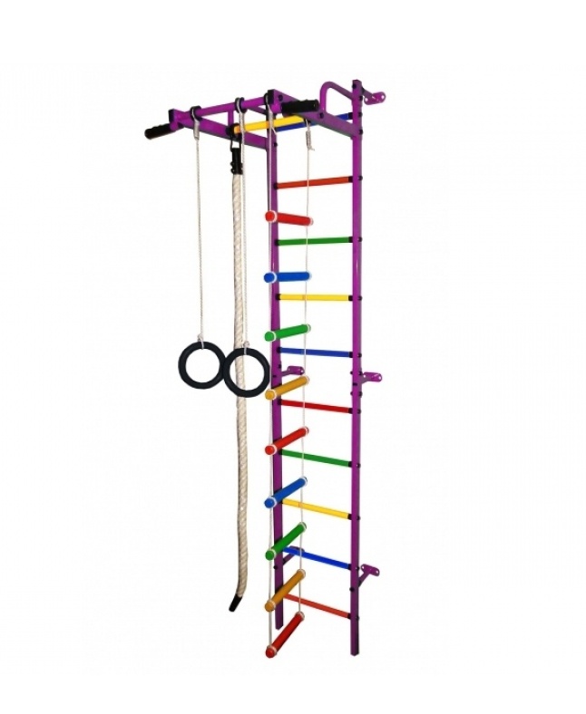 Если в детской комнате нет места для установки громоздкого спорткомплекса, то отличным решением станет шведская стенка Формула здоровья Карапуз-5А Плюс. Данная модель отличается компактными размерами, что делает такую шведскую стенку пригодной для установки в небольших помещениях. При этом, обеспечивается довольно разнообразная комплектация, которая включает в себя такое навесное оборудование, как турник, гимнастические кольца, веревочную лестницу и канат. Грузоподъемность конструкции составляет 110 кг, что достигается благодаря высокопрочной металлической основе. Также в производстве этой шведской стенки были использованы резина и ПВХ. Крепление осуществляется самым популярным способом – к стене, для чего предусмотрено несколько надежных точек опоры. Благодаря порошковому покрытию металлических элементов шведской стенки гарантирована долговечность службы и защита от образования коррозии.
