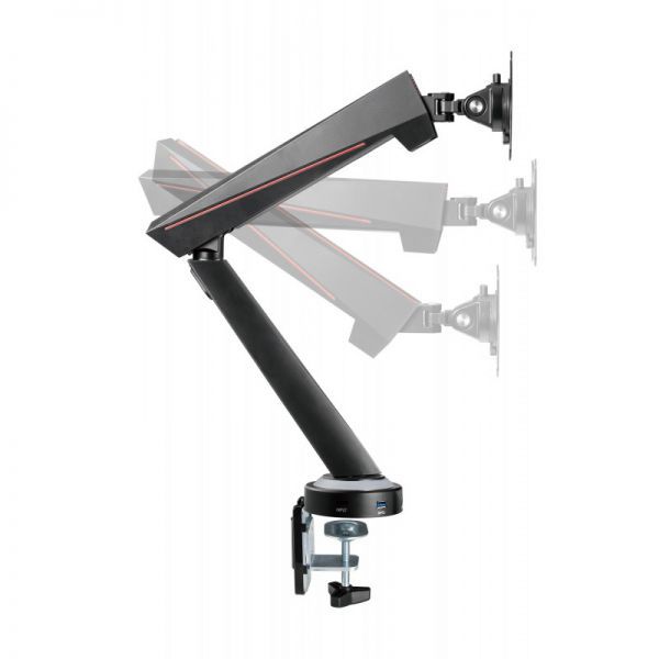 Созданный в геймерском стиле кронштейн для мониторов поможет вам разместить мониторы на максимально удобной высоте. Перемещение монитора вверх, вниз, вперед и назад осуществляется легким движением без усилий. Встроенная система управления кабелями обеспечивает чистоту и порядок ваших сетевых и AV-кабелей.