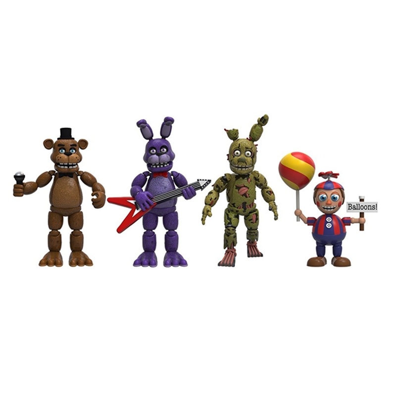 В наборе вы встретите таких любимых героев как Freddy, Bonnie, Spring trap и Balloon Boy. Эти малыши станут замечательным дополнением вашей коллекции игрушек.