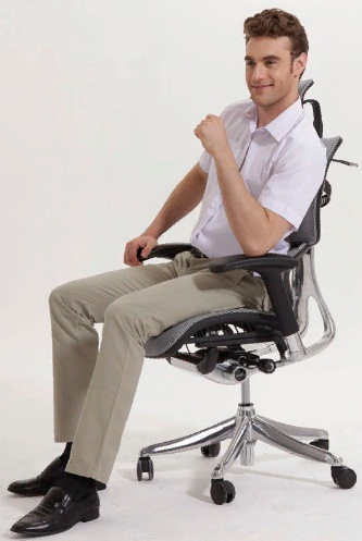 Особая форма сидения и угол наклона, который можно просто и очень тонко отрегулировать в максимально удобном положении, принуждает человека сесть настолько глубоко, чтобы спина полностью опиралась на поверхность кресла. Таким образом, удается снять нагрузку с позвоночника и передать ее эластичной и упругой сетчатой ткани, которой обтянут каркас. В итоге спина всегда находится в анатомически правильном положении.