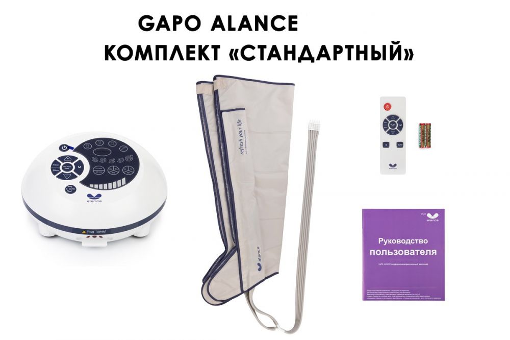 Аппарат для комбинированного массажа и прессотерапии GAPO Alance – обновлённое высокотехнологичное оборудование для профилактики и лечения целого ряда заболеваний. Данный массажёр подходит для применения в массажных центрах, салонах красоты, фитнес-клубах, а также в домашних условиях. Комплект «Стандарт» массажного аппарата Gapo Alance содержит в себе на выбор манжеты для ног трёх размеров (XL, XXL, X-Long). Последний вариант был разработан специально для высоких и стройных клиентов. Эти ботфорты будут идеально подходить по длине и не спадут из-за нехватки объёма. Манжеты для ног массируют область от ступни и до верхней части бедра. Они помогают снять мышечное напряжение, улучшают кровообращение и лимфоток, избавляют от боли и отёчности. Массаж с ботфортами способствует профилактике варикозного расширения вен, тромбоза и тромбофлебоза, хронической венозной недостаточности и других заболеваний нижних конечностей.