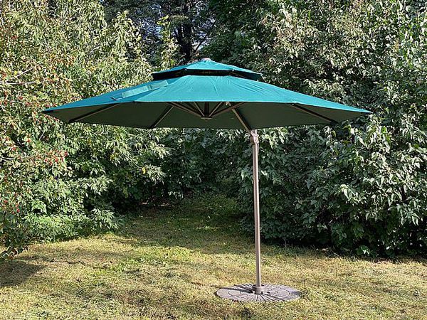 Для большего удобства предусмотрена педаль, при помощи которой основа может поворачивать купол, перемещая его в нужное положение – это весьма полезно при длительном пребывании под зонтом, когда солнечные лучи могут падать с разных углов. Красивый оттенок основы гармонирует с доступными цветовыми решениями покрытия.