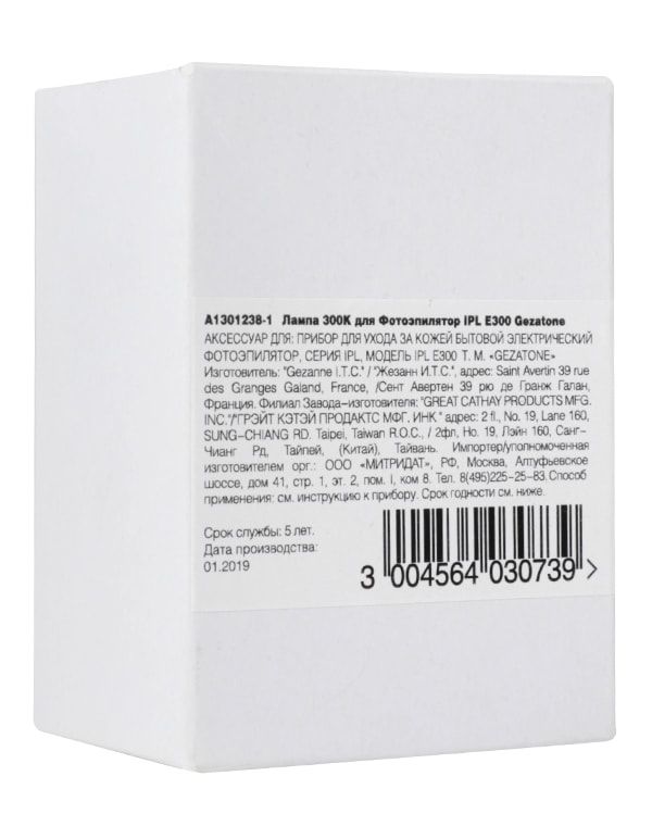 Одним из эффективных способов удаления нежелательных волос на лице и теле признана фотоэпиляция, которая является практически универсальной процедурой. Данная методика используется в компактном фотоэпиляторе GEZATONE IPL E300. Запасной картридж-лампа для фотоэпилятора Gezatone IPL E300 c ресурсом 300000 вспышек.
