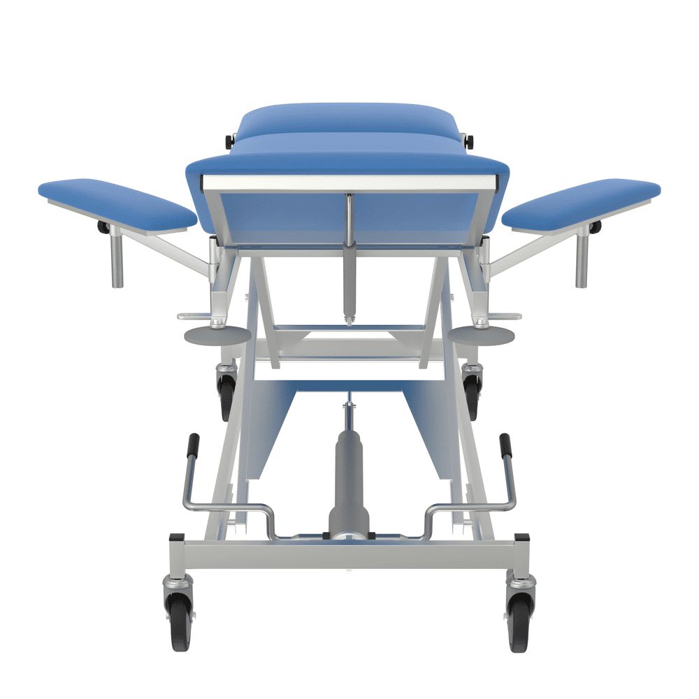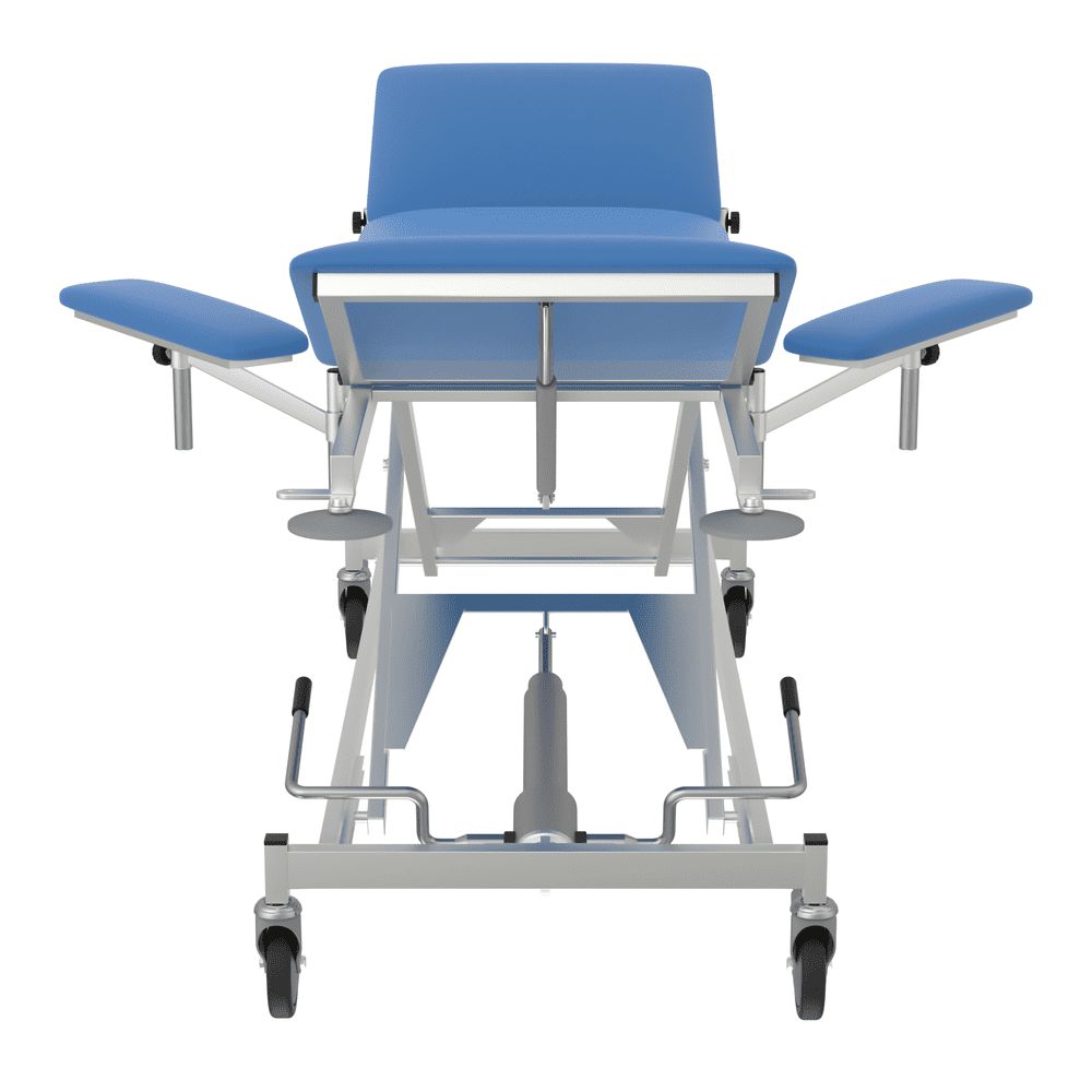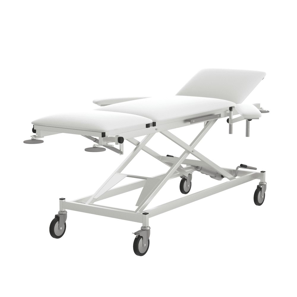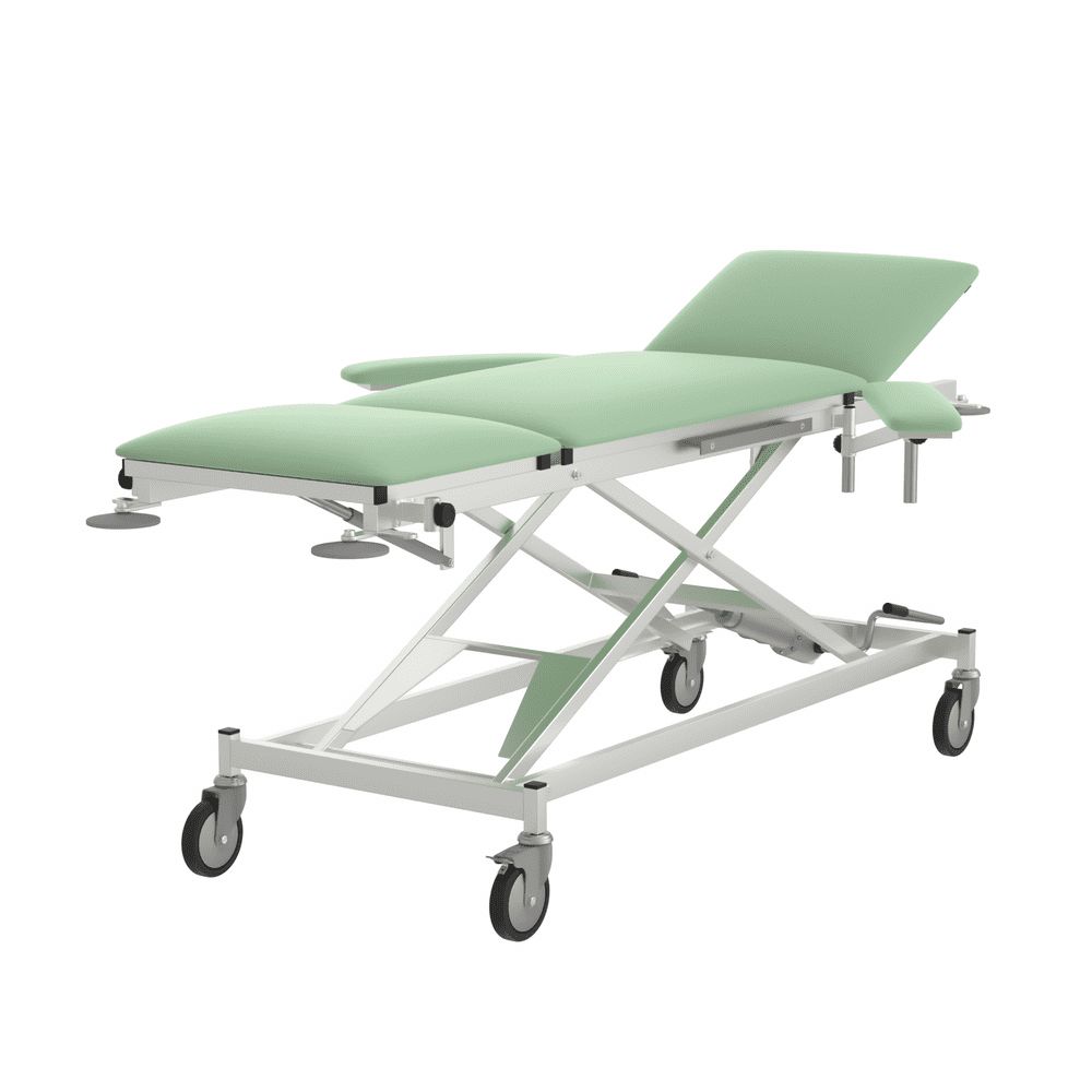 Предназначен для проведения осмотров, малых хирургических операций, различных видов медицинских процедур, также для проведения перевязок. Стол состоит из стального каркаса, трехсекционного ложа - подголовника, спинной, ножной секций; и двух подлокотников. Каркас имеет полимерно-порошковое покрытие, устойчивое к регулярной обработке всеми видами медицинских дезинфицирующих и моющих средств. Элементы ложа имеют мягкий верх с покрытием из искусственной кожи, устойчивой к обработке дезинфицирующими средствами и ультрафиолетовому облучению, исполнены по бесшовной технологии для облегчения проведения санитарной обработки.