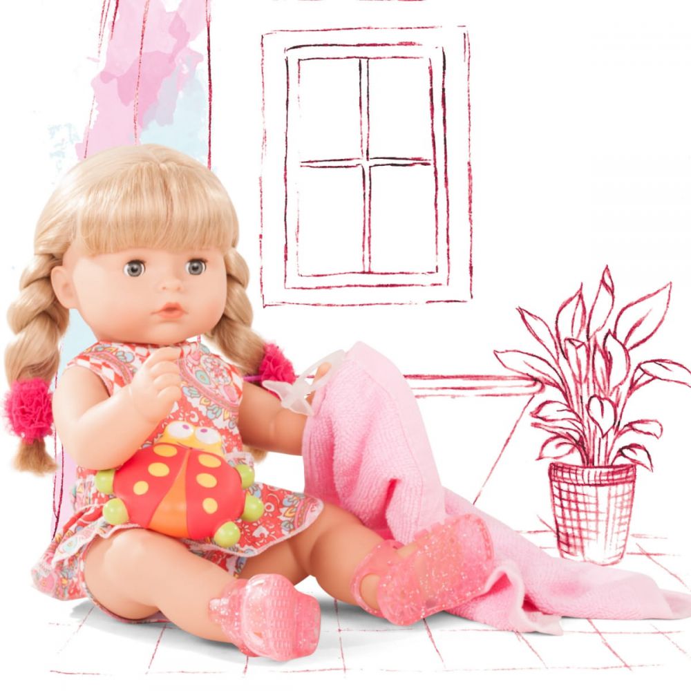 Макси Аквини идеальная кукла для купания. Одета в летний костюм, и не может дождатся похода на озеро чтоб скорее позагорать. Ей костюмчик с винтажным рисуиком и удобными блестящими сандалями. Её любимая игрушка водяной жучёк всегда с собой. Скорей запакуй своё полотенце в сумочку, и твой день полный приключений может начинатся.