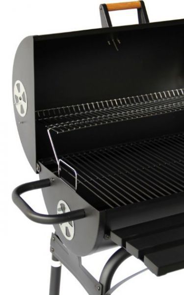 Гриль-барбекю с функцией коптильни Green Glade 11100 имеет три дополнительные удобные полочки и одну вместительную жарочную поверхность. Для удобного перемещения по территории гриль оснащен парой колес. Основание гриля Green Glade 11100 изготовлено из высококачественного окрашенного металла круглого сечения. Две верхние прочные полки дают возможность расставить пищу и приправы по своему усмотрению, а нижняя может служить в качестве дровницы. Для контроля за температурой внутри топки в крышку встроен термометр.