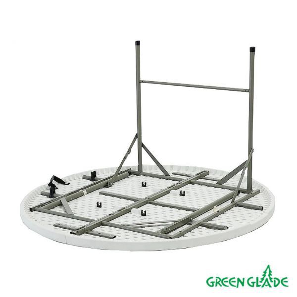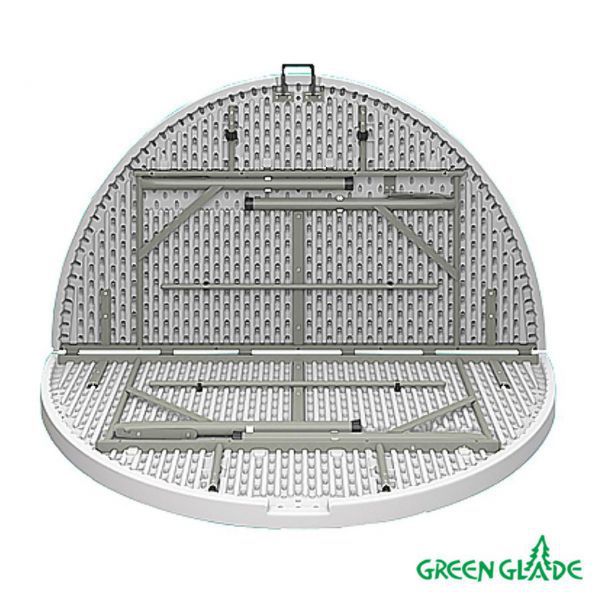 Складной стол-чемодан Green Glade F160 имеет круглую форму, диаметр в разложенном виде 160 см. Такая модель хорошо подойдет для использования на даче. Благодаря его форме, он идеально вписывается в шестигранные шатры и беседки. За ним может разместиться большая компания, а благодаря используемым при производстве материалам он совершенно не боится влаги. Так же стол подойдет для использования на торжественных мероприятиях или банкетах.