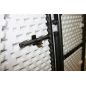 Конструкция стола позволяет сложить его пополам, в подобие чемодана. В таком состоянии его удобно хранить толщина в сложенном виде составляет всего 11 см. Все элементы каркаса умещаются внутри, половинки надежно фиксируются между собой при помощи зажимов. Для удобства переноски имеется ручка.