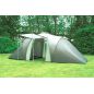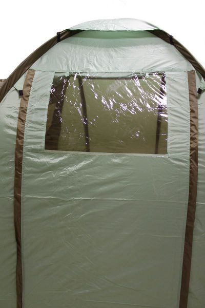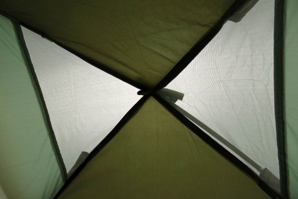Вы можете не бояться дождя и мокрой земли: - Водостойкость внешнего тента 2000 мм и проклееные швы гарантируют прекрасную защиту от дождя и ветра. - Дно палатки полностью водонепроницаемо и сделано из прочного армированного полиэтилена. Используйте продуманную систему вентиляции, чтобы не было жарко: - Входная дверь во внутреннюю палатку состоит частично из глухого полотна и на 1/2 из москитной сетки, которая дублируется глухим полотном, и застегивается на молнию. Москитную часть двери можно не закрывать глухой стенкой, это поможет лучшему движению воздуха. - В этой двухкомнатной кемпинговой палатке вентиляция в спальных отделениях осуществляется через двойной вентиляционный клапан на задней стенке палатки, который представляет собой большую треугольную вставку из москитной сетки на внутренней палатке и треугольное окошко из москитной сетки на внешнем тенте, закрытое снаружи водонепроницаемым клапаном, который можно приоткрыть для лучшей вентиляции. Кроме того, внутренняя палатка сшита из дышащего материала, который прекрасно пропускает воздух и препятствует возникновению конденсата. - Вентиляция тамбура осуществляется через вентеляционное окно на куполе палатки, которое сверху прикрывается от дождя водонепроницаемым полотном. Также Вы можете открыть тамбур с двух сторон, с одной стороны закрывающее тамбур полотнище можно поставить на выносные стойки, и будет замечательный козырек, который закроет от солнца и дождя.