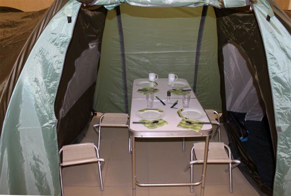 - семьям с одним или двумя-тремя детьми: родители спят в одной комнате, дети в другой. - двум семьям без детей или с одним маленьким ребенком. - двум парам друзей, едущим на совместный отдых. - просто друзьям: мальчики направо, девочки налево. - школьникам, студентам, туристам для организации лагерной стоянки. - базам отдыха и палаточным городкам для приема туристов. - одной семье без детей или с маленьким ребенком. Можно не вешать одну внутреннюю палатку и тогда получится огромный тамбур, который будет служить детской, кухней и столовой. Но если вдруг нагрянут друзья, Вы быстро организуете им спальное место, повесив вторую внутреннюю палатку.