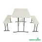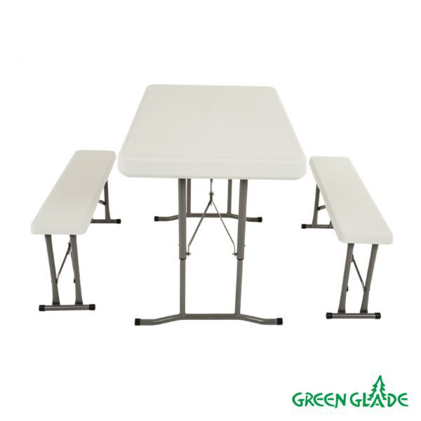 Удобный и компактный набор складной мебели Green Glade В113 просто незаменим для загородных поездок и отдыха на природе в кругу семьи или компании друзей. Комплект состоит из стола и двух скамеек, которые легко складываются и убираются внутрь стола. В сложенном состоянии набор складной мебели Green Glade В113 занимает мало места, и его не только удобно хранить в помещении, но и брать с собой в поездки. Для удобства у него имеется специальная ручка для переноски.