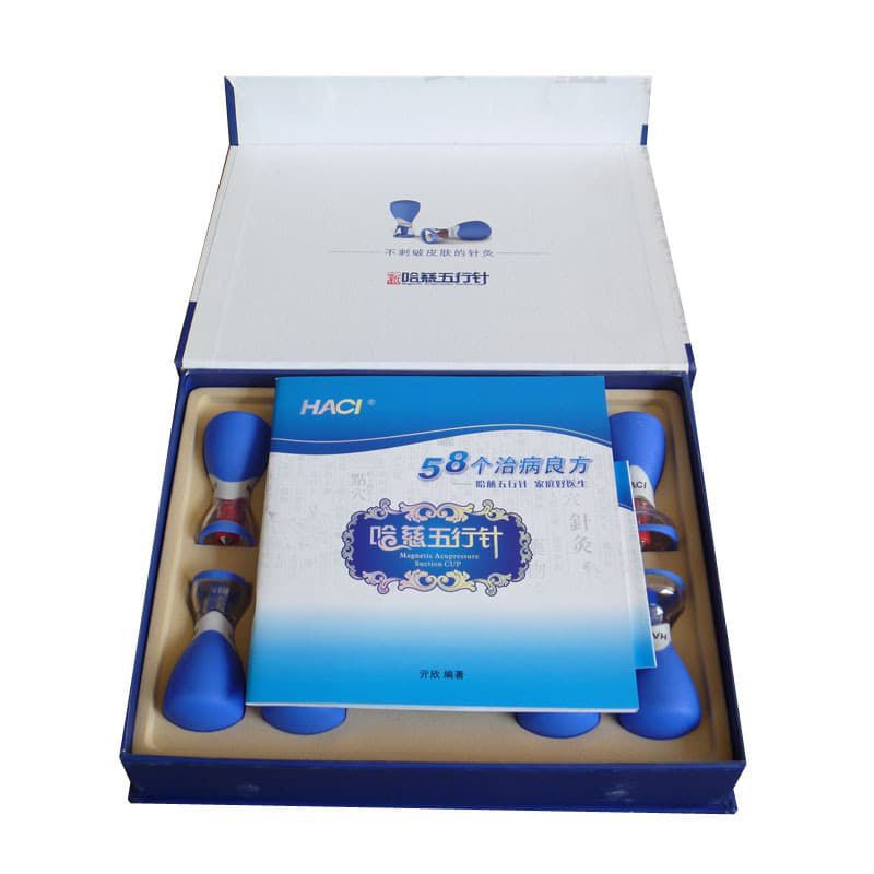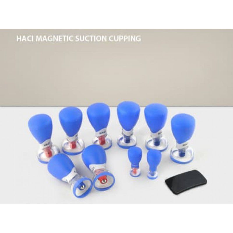 Вакуумные банки HACI Deluxe снабжены сильным магнитом, который по своим характеристикам существенно превосходит магниты, применяемые в других банках. Это обеспечивает достижение наилучшего результата в магнитотерапии. Каждая баночка состоит из груши для нагнетания воздуха, твердой емкости и магнита соответствующего цвету полярности, красный цвет – южный полюс, синий цвет – северный полюс.
