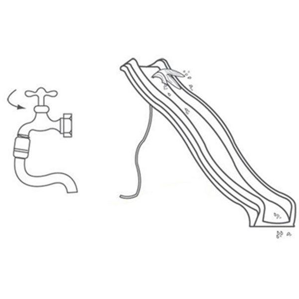 Волновой пластиковый трехметровый скат позволит организовать яркую и веселую игровую зону для ваших детей. Данная горка производится методом литья полиэтилена высокой плотности HDPE под давлением с добавлением стекловолокна. Благодаря методу каскадного литья данный волнистый пластиковый жёлоб для катания имеет наивысшие характеристики скольжения. Одним из достоинств является то, что благодаря своим материалам она не остужается на холоде. Горка имеет систему подключения воды. Для этого имеется специальный штуцер, в котором сверлится отверстие, а затем фиксируется обычный садовый шланг при помощи хомута.