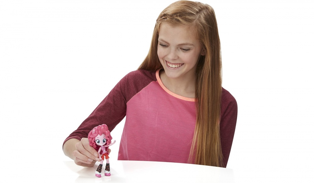 Красочная куколка выполнена в виде миниатюрной копии одного из персонажей мультфильма «My Little Pony Equestria Girls» Пинки Пай с розовыми волосами.