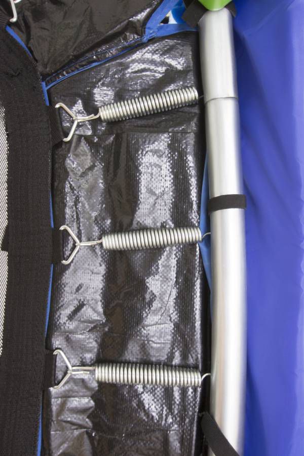 Особенность батута серии Crox – прыжковое полотно и защитный мат соединяются без зазоров, что исключает возможность пользователю получить травму от пружин, в обычных батутах прыжковое полотно и защитный мат — это два раздельных элемента и вместе стыка этих деталей сохраняется щель, которая исключена в Crox.