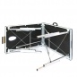 Легок и прочен. Малые габариты. Удобен при транспортировке. Прорезь для лица. Каркас из стальной трубы и системы тросов. Ножки из алюминиевого сплава для снижения веса.