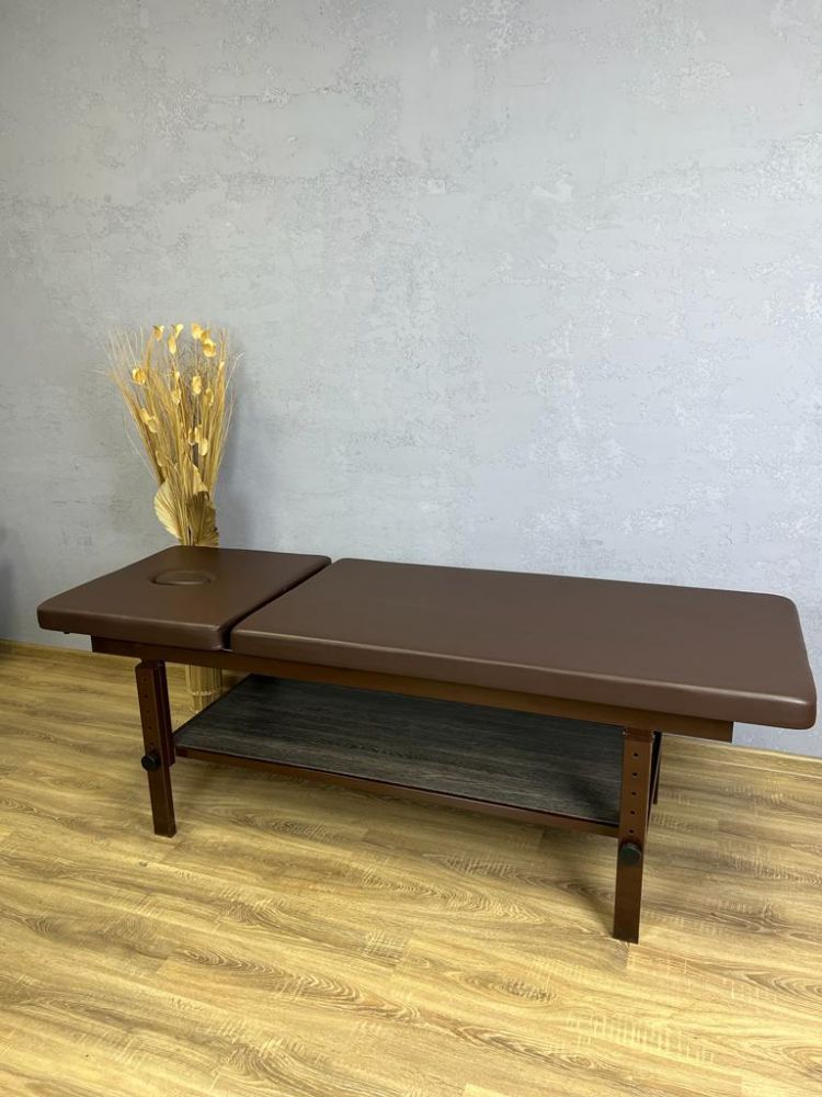 Удобная и прочная кушетка с шириной 70 см, регулировкой высоты и полкой для хранения принадлежностей. Кушетку благодаря усиленному каркасу, можно использовать для проведения массажа, косметологических, лечебных процедур, а также мануальной терапии.