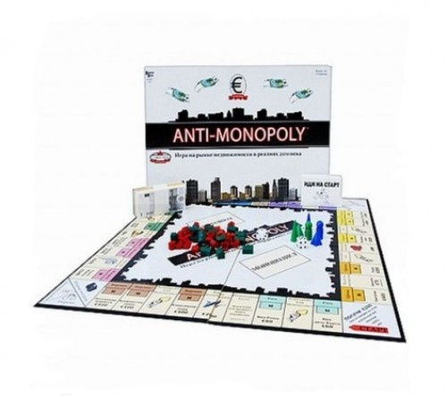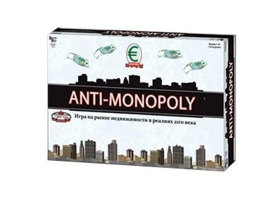 Антимонополия — отличная экономическая игра для тех, кому мало классической Монополии. В этой игре в отличие от Монополии, в игре два разных стратегических подхода — монополистический и конкурентный. Разница в том, что Монополист должен строить свою империю, рассчитывая на существенные прибыли при захвате рынка, а Конкурент может действовать здесь и сейчас, извлекая максимум прибыли из своих компаний. По сути, первая стратегия — это модель классической экономики Смита, а вторая — более современных принципов Траута.