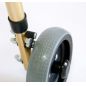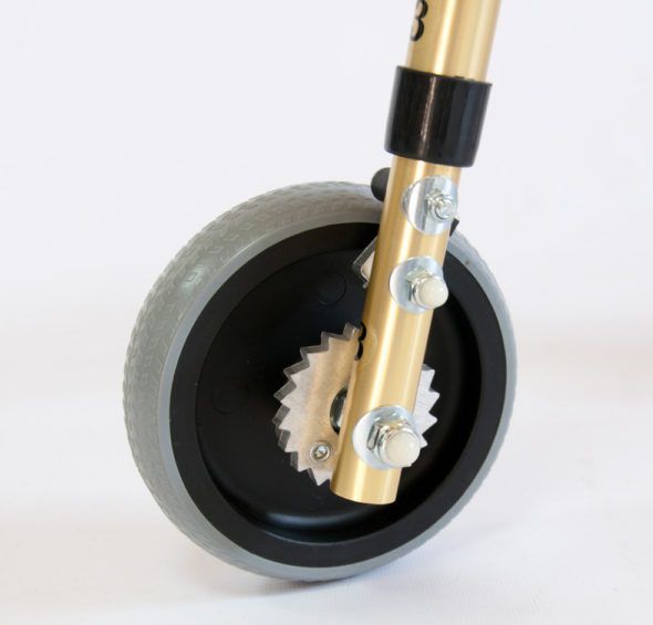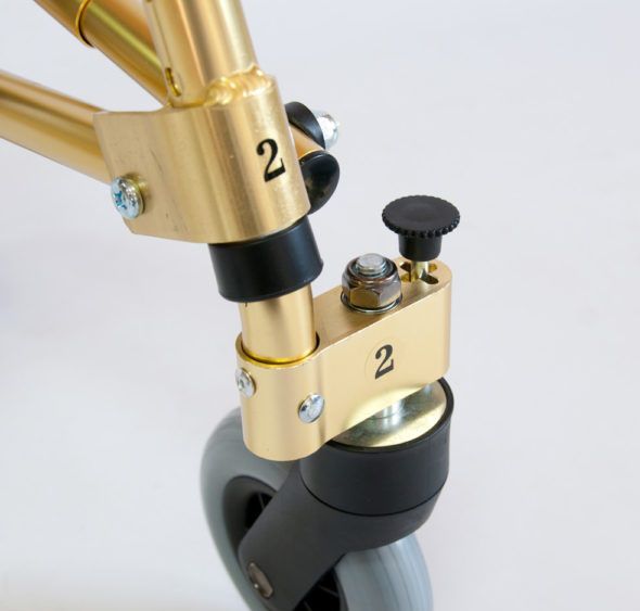 Высота устройства контролируется механическими фиксаторами. Ремни безопасности фиксируют тело ребенка, не давая ему упасть. Задние колеса оснащены храповым механизмом. Грузоподъемность изделия составляет 45 кг.
