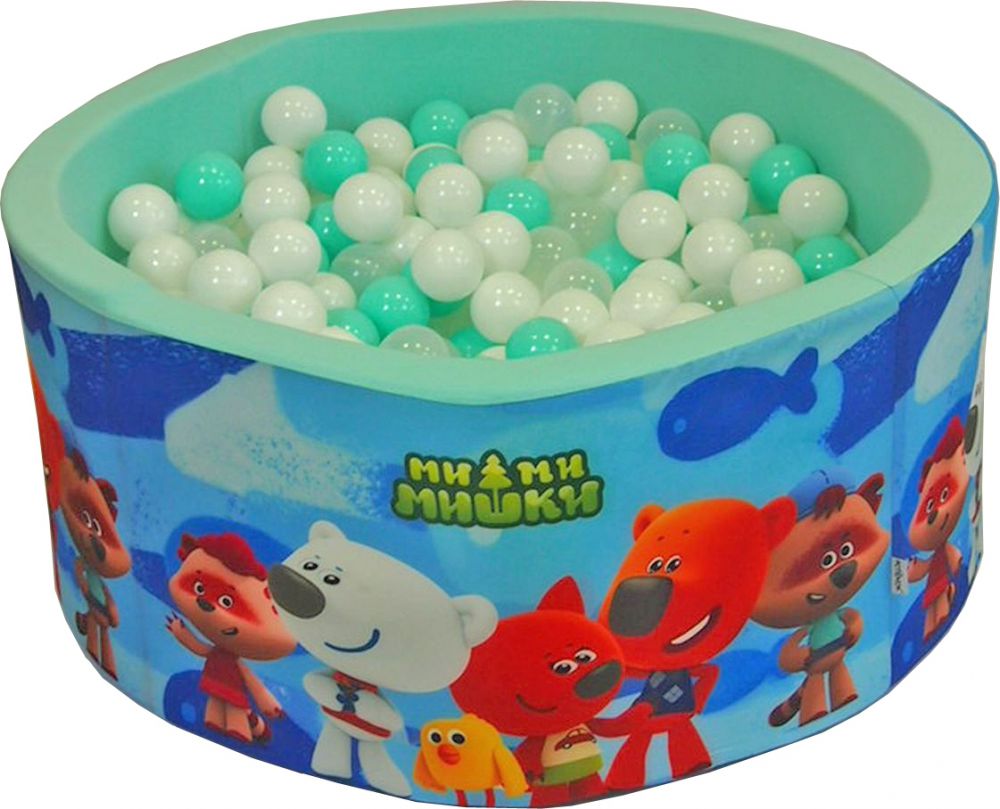 Сухой игровой бассейн "МиМиМишки" высотой 40 см, 1 м в диаметре. Поставляется с 200 шарами в комплекте. Детский бассейн выполнен в необычной и приятной расцветке, а комплект включает 3 цвета шариков - белых, мятных и прозрачных.