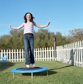Спортивный батут HouseFit позволяет проводить домашние тренировки, укреплять мышечный каркас, повышать выносливость и развивать вестибулярный аппарат. Батут стоит на опорных ножках, снабженных не скользящими, прорезиненными накладками. Рабочая поверхность батута представлена специальной упругой сеткой, закрепленной пружинами в нескольких точках. По периметру батута проходит мягкая вставка, ограничивающая рабочую область. Грузоподъемность батута ограничена 110 кг.