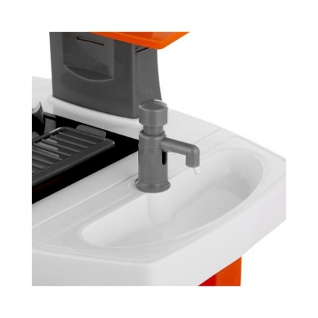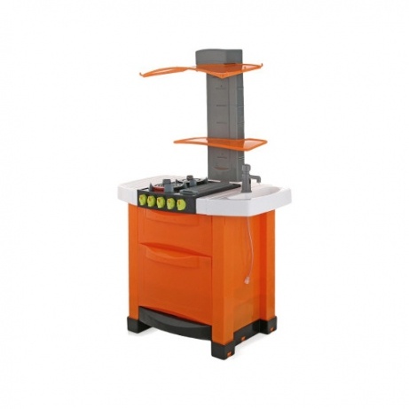 Эта детская кухня не только прекрасно укомплектована, но еще и выглядит стильно и привлекательно. Она понравится юным хозяюшкам и будущим поварам, так как в ней есть даже настоящая водичка, которая льется из крана!