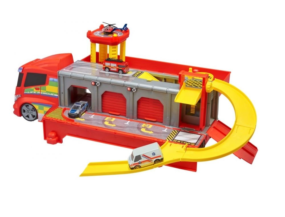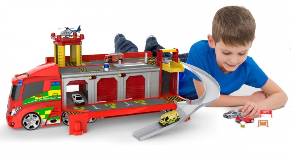 "Мобильный центр быстрого реагирования" — отличный игровой набор для сюжетно-ролевых игр мальчишек и девчонок. Если включить воображение, то запросто можно представить себя в качестве героя приключения, захватывающего дух. Боковая стенка мобильного центра открывает индивидуальные отсеки для служебной техники. На откидывающейся крыше находится вертолетная площадка.