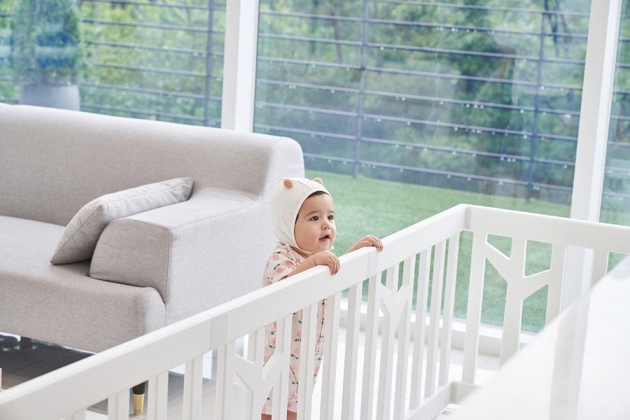 Зазоры между элементами увеличены до 80 мм, благодаря этому ручки и ножки малышей не застрянут, а комната будет выглядеть уютной и просторной.
