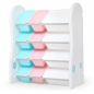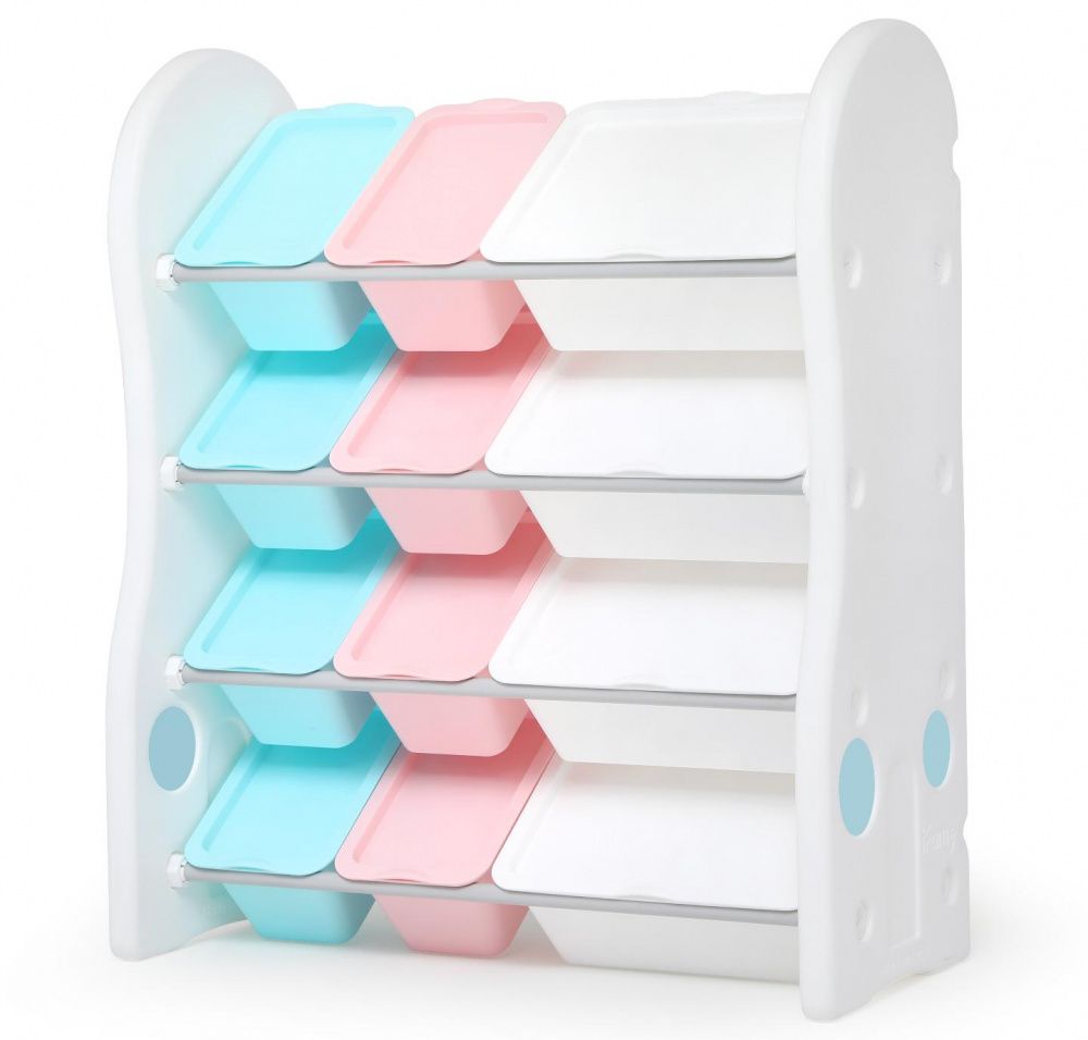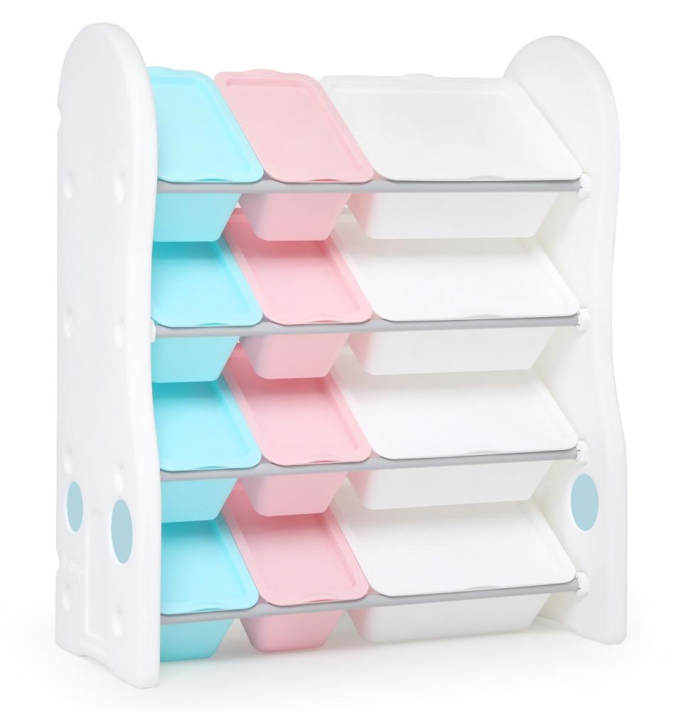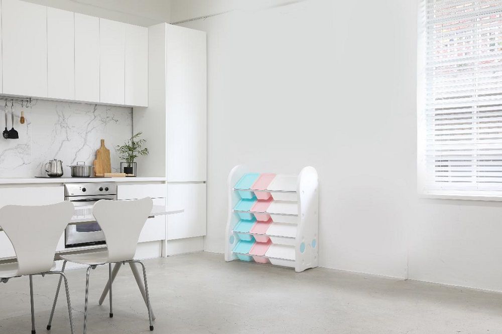 Стеллаж выполнен из гипоаллергенного пластика (PP/PE). Данный материал экологичен и прост в чистке. Небольшой вес стеллажа, и его устойчивая конструкция обеспечивают ребёнку безопасность от ушибов.