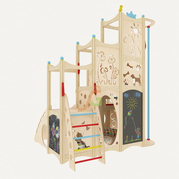 Наша цель – дарить радость самым маленьким пользователям! Именно для них разработан спортивно-развлекательный комплекс. Благодаря наличию всевозможных спортивных элементов, декоративных прорезей на панелях, интересному внутреннему пространству дети с особым интересом проводят по несколько часов в день в игровом домике.